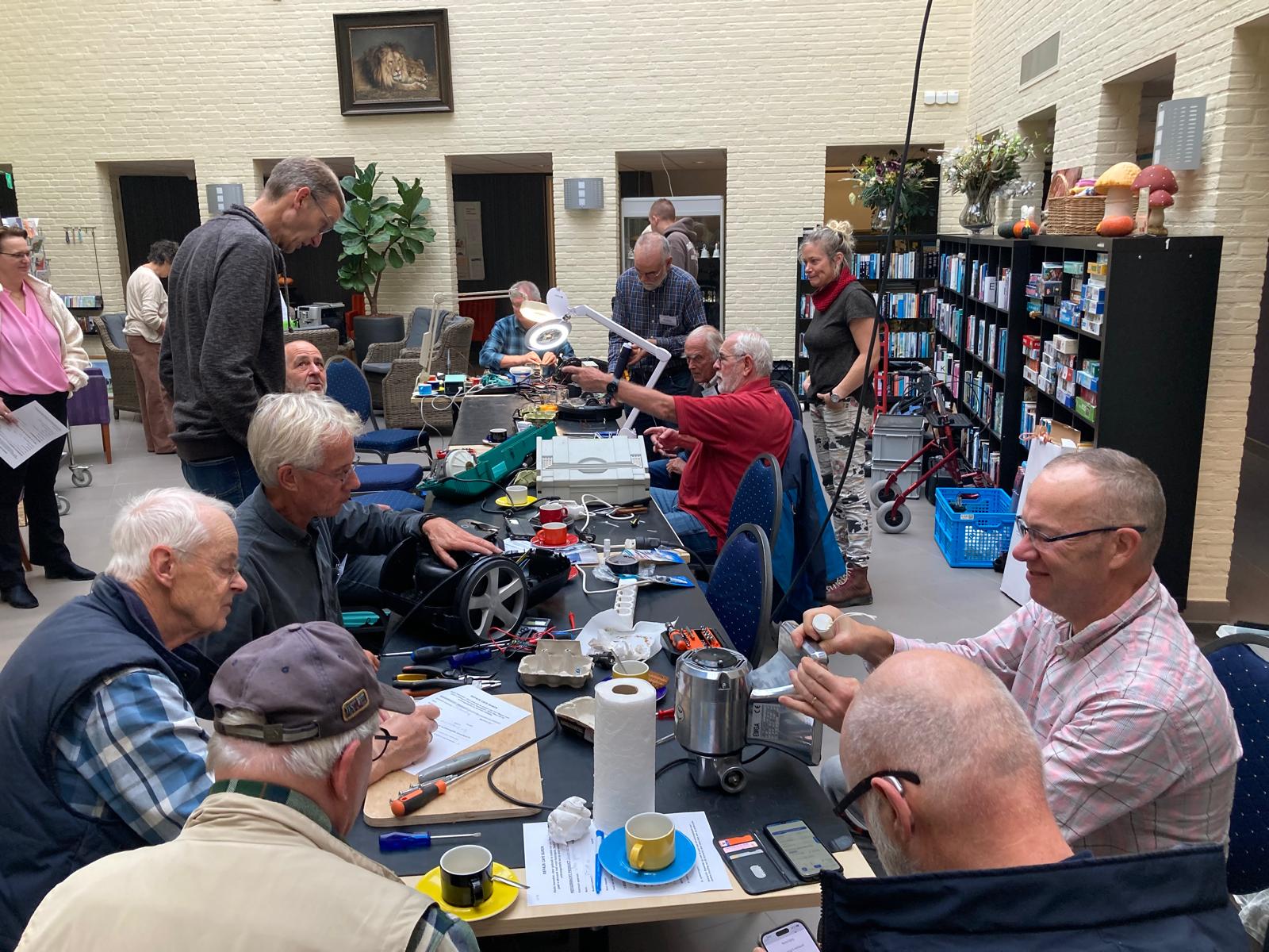 Maar wel met een kopje koffie/thee én in een gezellige sfeer. De reparatie is gratis, alleen